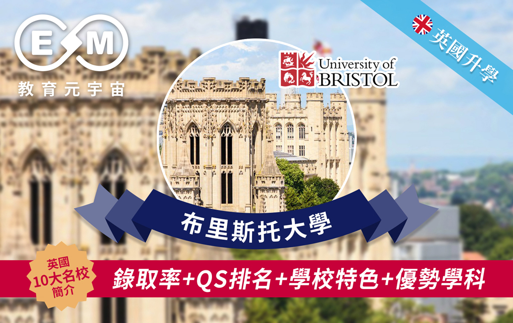 始建於1876年的布里斯托大學,是全球百強大學之一、英國十強大學之一,以“學術卓越創新與獨立前瞻性精神相結合”獲得全球公認的傑出聲譽。大學分六個學部——人文藝術學部、科學學部、工程學部、 醫藥學與牙醫學部、 社會科學與法律學部、醫學科學與獸醫科學學部,學部下設學院、科系和研究中心。在2022年度QS世界大學學科排名中,布里斯托大學有26個學科進入前100,其中9個學科進入前50,被譽為創新與科研的傑出中心。大學至今共培養了13位諾貝爾獎得主,目前亦擁有40名英國皇家學會會員和13名英國學院會員,處於全球研究領域前沿。現由前英國皇家學會會長、2001年諾貝爾獎得主保羅·諾斯爵士擔任校監。