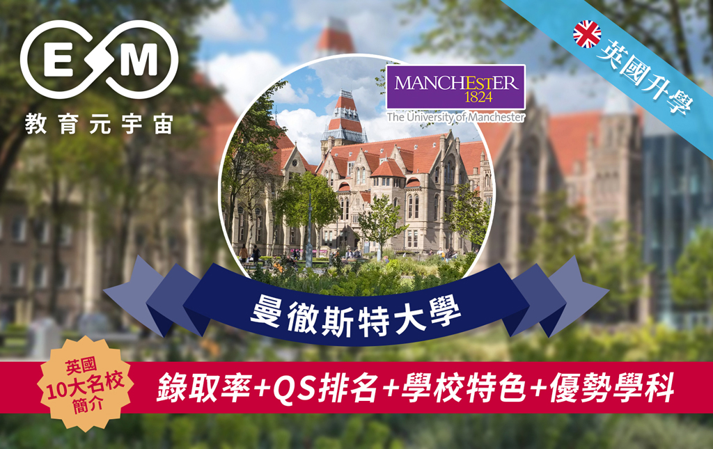 曼徹斯特大學,於2023年度QS世界大學排名第28,於2022年度泰晤士高等教育世界大學排名第50,亦是英國獲得“女王周年紀念獎”次數第二多的大學(7次,僅次於牛津大學;“女王周年紀念獎”是自1994年以來每兩年頒發的英國高等教育獎項)。